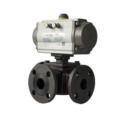 氣動三通球閥AIRTORQU氣動執行機構和三通法蘭球閥組成。根據管道中不同的介質選用密封材質。氣動三通球閥分"T"型三通球閥和"L"型三通球閥,具有結構緊湊、外型美觀、密封性能好,它能實現對管道中介質流向的切換,也能使相互垂直的兩個通道連通或關閉。適用于供水、石化、冶金、礦山、輕紡、能源、造紙、食品、鋼鐵等管路系統中對介質流向進行切換以及對介質的分流或混合流體。